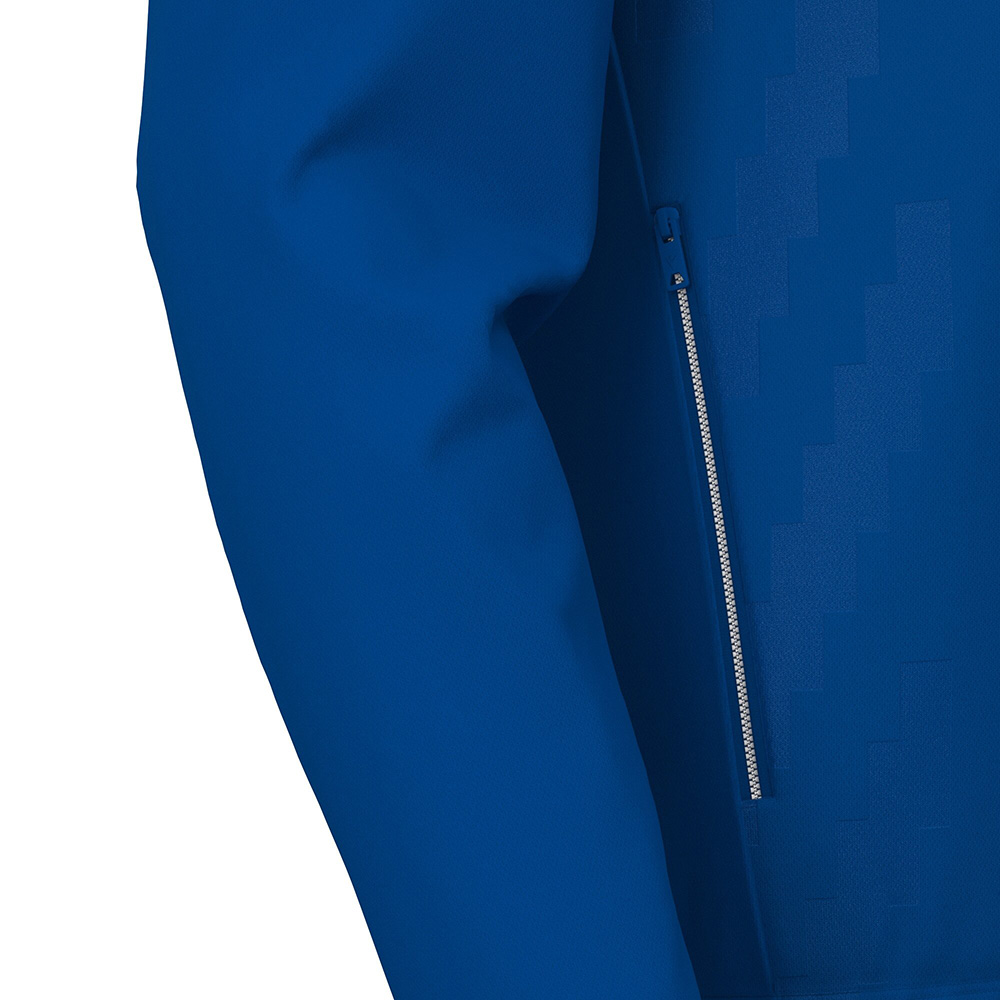 Fermoarul integral die-cast, prevăzut cu cursor metalic, oferă rezistență și un look actual, permițând îmbrăcarea și ajustarea rapidă. Buzunarele laterale cu fermoar sunt ideale pentru depozitarea în siguranță a obiectelor esențiale precum telefonul, cheile sau portofelul. Manșetele și tivul cu elastic expus contribuie la o fixare optimă și completează o siluetă dinamică, sportivă.