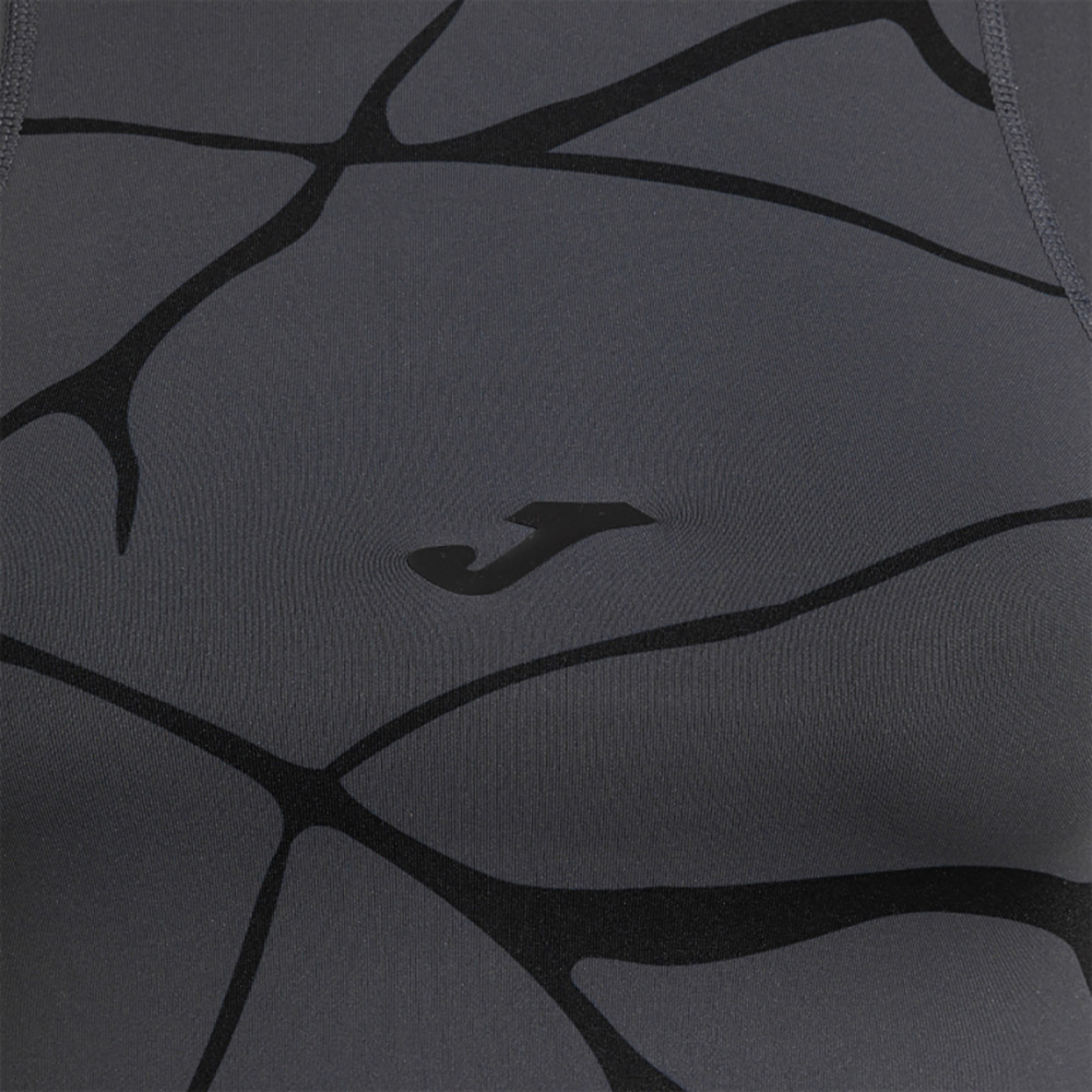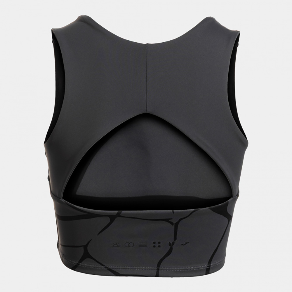 Are un design atletic, cu bretele late și spate tip racerback, prevăzut cu o deschidere care optimizează libertatea de mișcare și facilitează ventilația transpirației în una dintre zonele unde aceasta se acumulează cel mai mult.