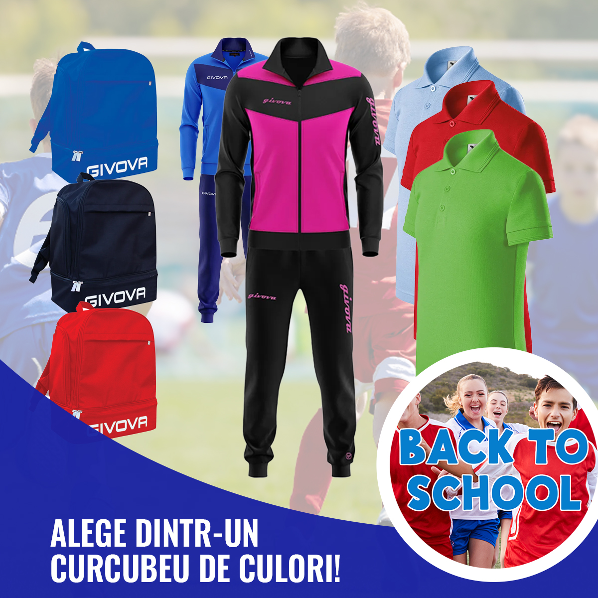 📦 Pachet Back 2 School #3 – Trening Givova Visa + Tricou Polo bumbac + Rucsac Sport