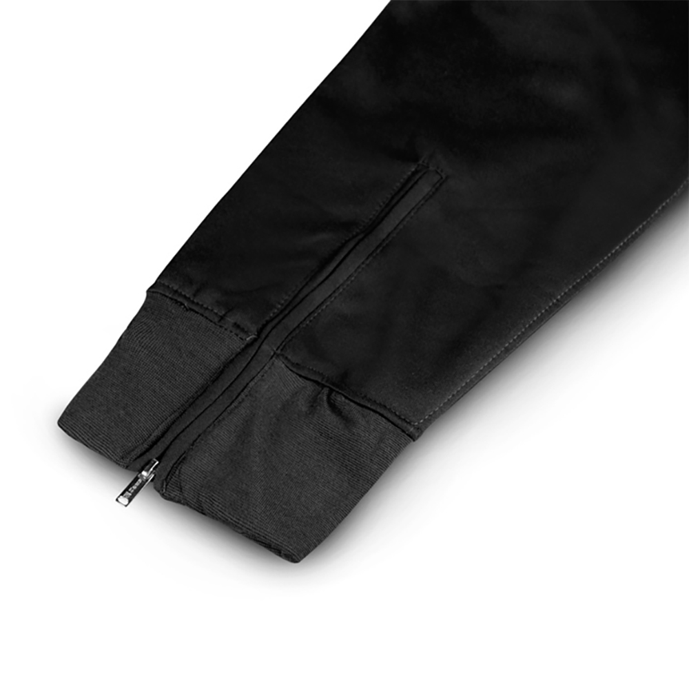 Bluza de trening este prevazuta cu buzunare laterale cu fermoare si fermoar central 1/3.