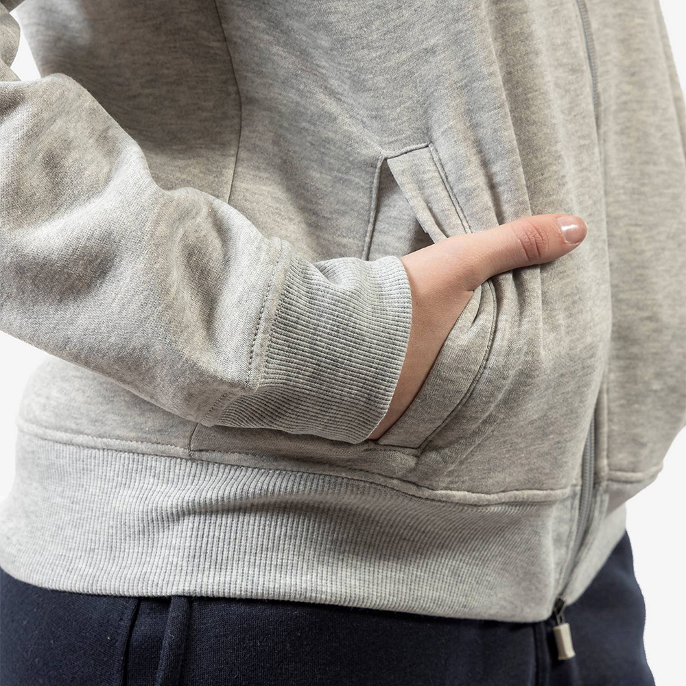 Bluza de trening este prevazuta cu gluga, fermoar central full-zip si buzunare laterale